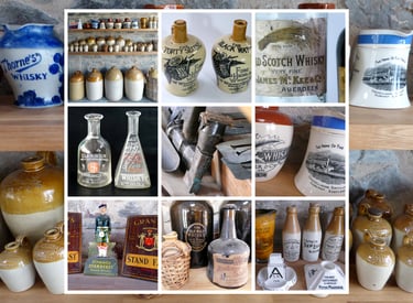 Has a reference collection of historic bottles, put together through 40 years of digging dumps and buying, that includes examples dating back into the 1700’s. Also a wide range of whisky related artefacts that show the different ways that Scotch whisky has been packaged and promoted over the years.