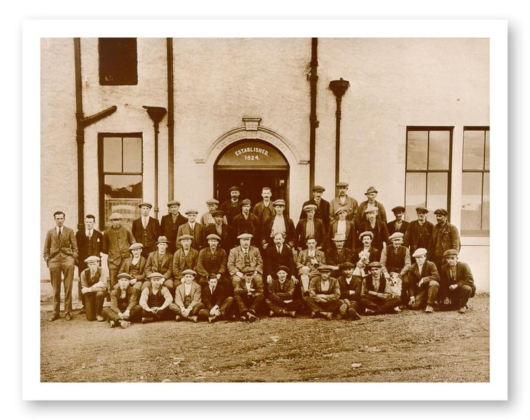 Glenlivet Distillery 1903: Peter Mackenzie 2nd from right in front row (2 years as manager)